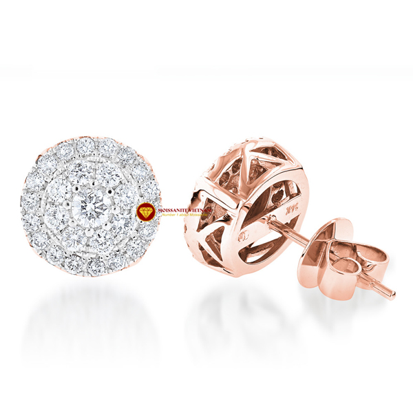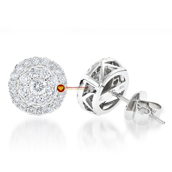 Bông tai nam kim cương nhân tạo mỹ moissanite cluster stud small được thiết kế kết hợp giữa vàng 18k và kim cương nhân tạo mỹ moissanite