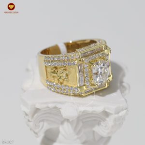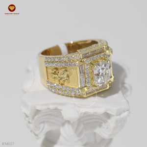 Nhẫn nam kim cương nhân tạo moissanite RM027 được chúng tôi thiết kế kết hợp giữa vàng vàng 18k và toàn bộ kim cương nhân tạo Moissanite. Mang đến vẻ đẹp sang trọng, phong thái mạnh mẽ, đẳng cấp cho phái mạnh.