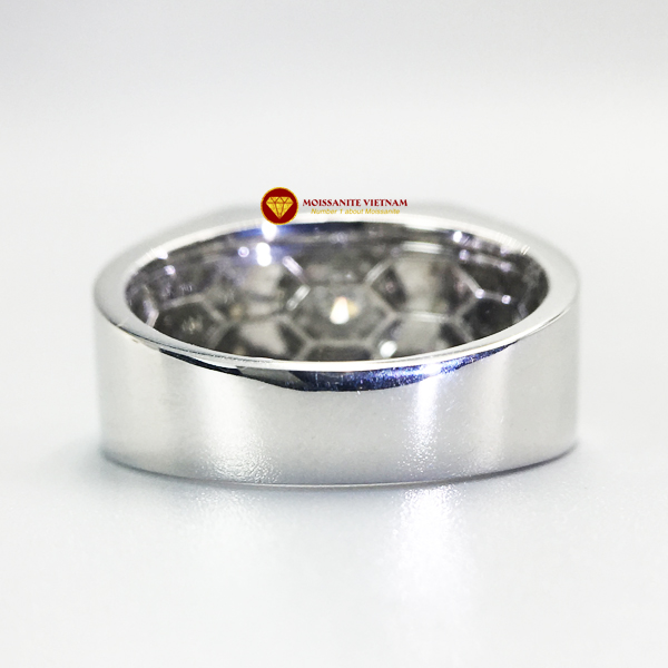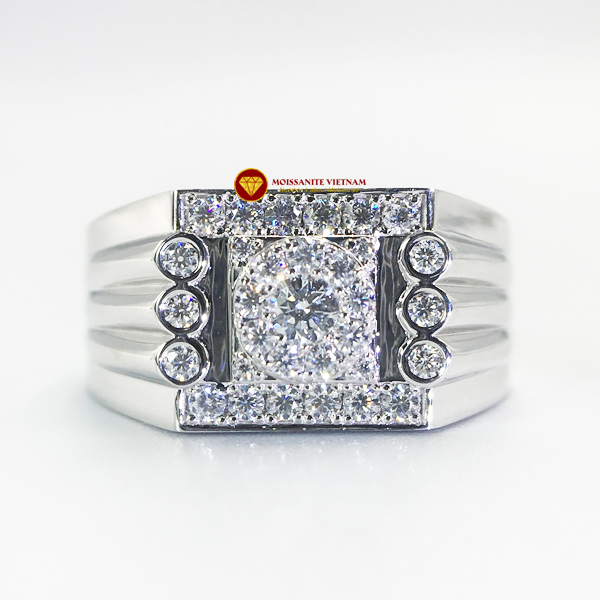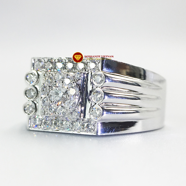 Nhẫn nam kim cương nhân tạo Mỹ moissanite chủ ghép vàng trắng 18k NO.10 được chúng tôi thiết kế, chế tác kết hợp giữa vàng trắng 18k và kim cương nhân tạo Mỹ moissanite.