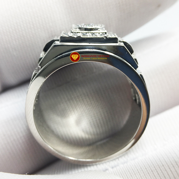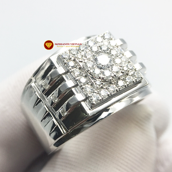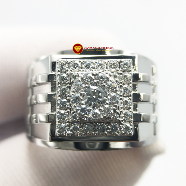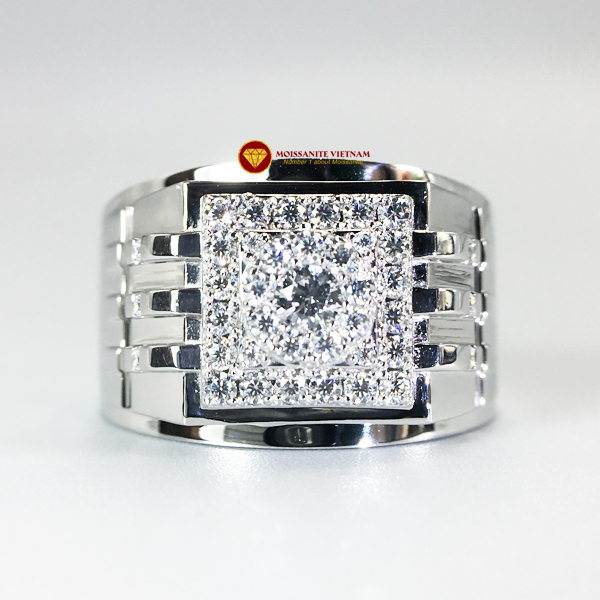 Nhẫn nam kim cương nhân tạo Mỹ moissanite chủ ghép vàng trắng 18k NO.11 được chúng tôi thiết kế, chế tác kết hợp giữa vàng trắng 18k và kim cương nhân tạo Mỹ moissanite.