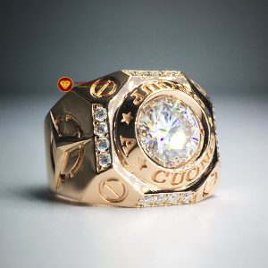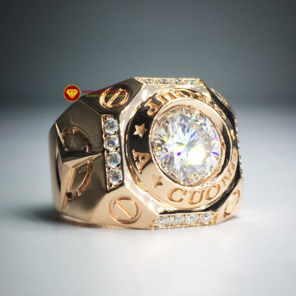 Nhẫn nam Mercedes kim cương nhân tạo Mỹ moissanite vàng hồng 18k được chúng tôi thiết kế, chế tác kết hợp giữa vàng hồng 18k và kim cương nhân tạo Mỹ moissanite.